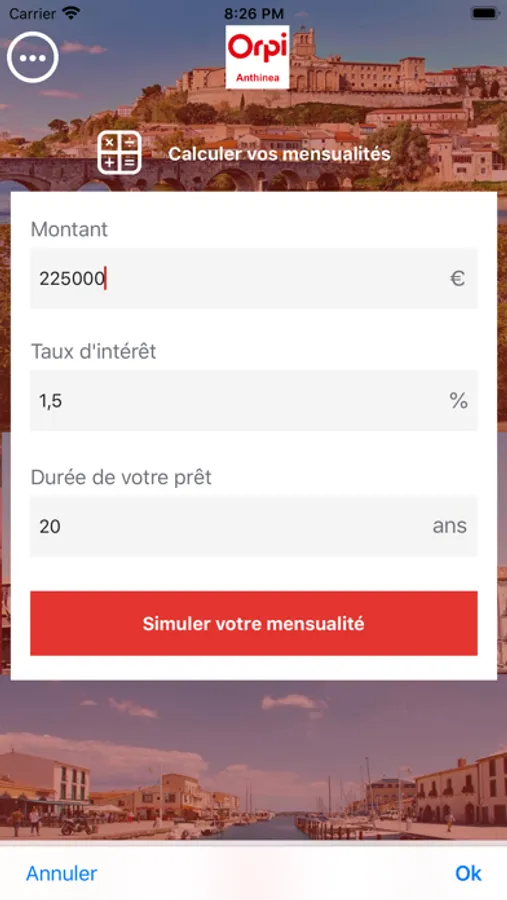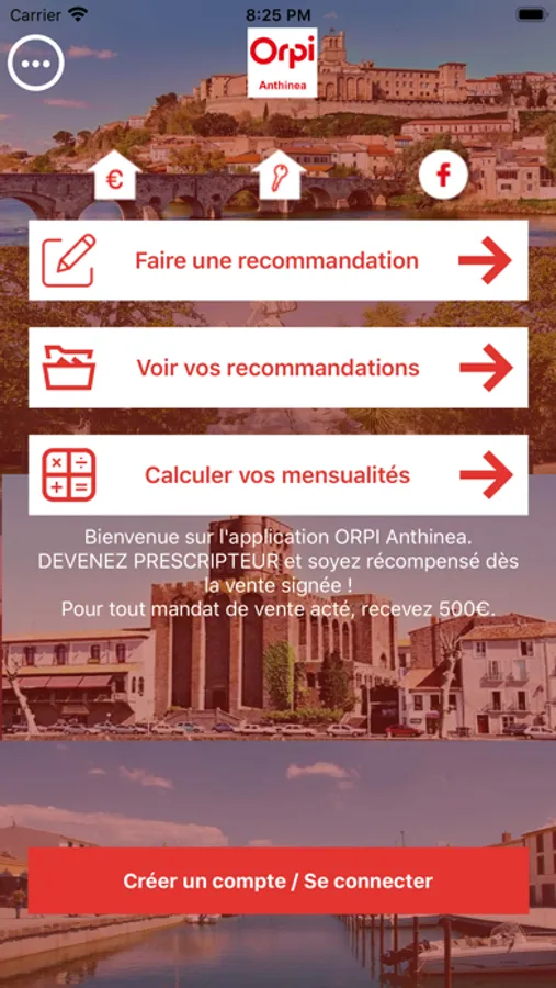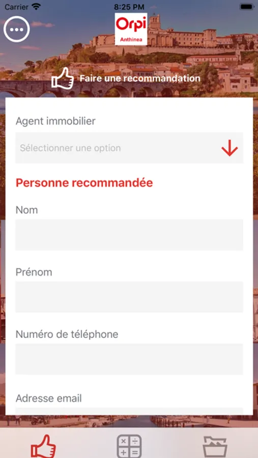 Grâce à l'application ORPI Anthinea vous allez à la fois pouvoir faire une recommandation d'un ami, voisin, famille, etc à l'agent immobilier de votre choix, mais également pouvoir calculer vos mensualités de remboursement de votre crédit immobilier.