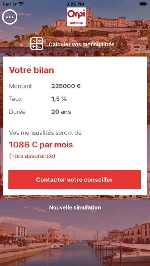 Quoi de mieux que de retrouver dans une application dédiée, une solution pour faire des recommandations de biens immobiliers (Maison ; Appartement ; Terrain ; Parking / Box ; Garage ; Commerce; Crédit immobilier; Assurance crédit immobilier; autre...), de lister les recommandations que vous avez envoyé à l'agence 'ORPI Anthinea' à Nice, ou encore retrouver un nouvel outil : le simulateur de mensualités.