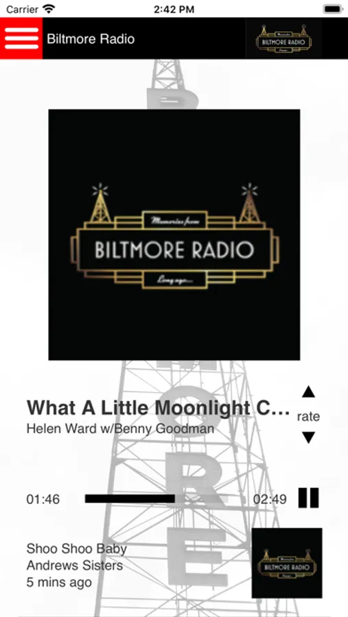 From 1925-1955, Atlanta's historic Biltmore Hotel was home to the studios of WSB Radio. Today, Biltmore Radio honors the history of this important broadcast site by re-imagining those decades with great Big Band music from the legendary voices of the era. Join us!