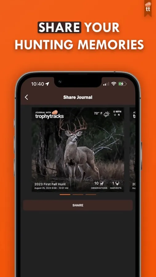 The TrophyTracks journal is a free hunting app available for all hunters and is designed to keep track of all information before, during, and after a hunt. Our hunting app is a personal journal that can be used year-round while hunting or scouting for any type of game. TrophyTracks can be used to track locations, observations, harvests, field notes, and pictures while hunting, scouting, or checking trail cameras. Hunters can also add past hunts, observations, or harvests to complete your hunting journal.