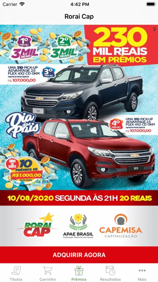 O aplicativo tem por objetivo possibilitar a venda de títulos de contribuição Rorai Cap pela Internet, com ele você pode realizar consultas, compras e acompanhar todos os sorteios realizados na sua região.