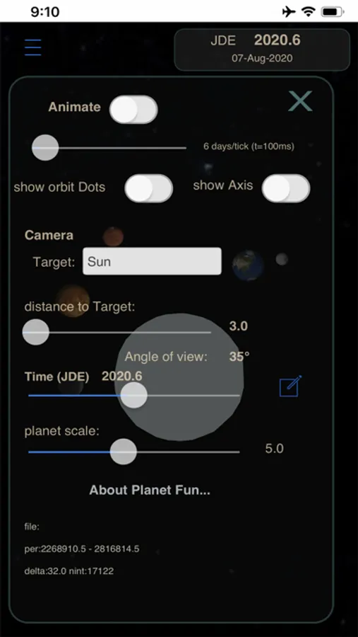 * Solar system animation with configurable speed