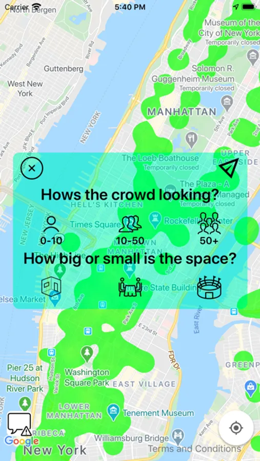 A new way to navigate the world. We use realtime or close to realtime data to show our users where the largest crowds are. Using our app users can get an idea of what the population density is around them in a given area.