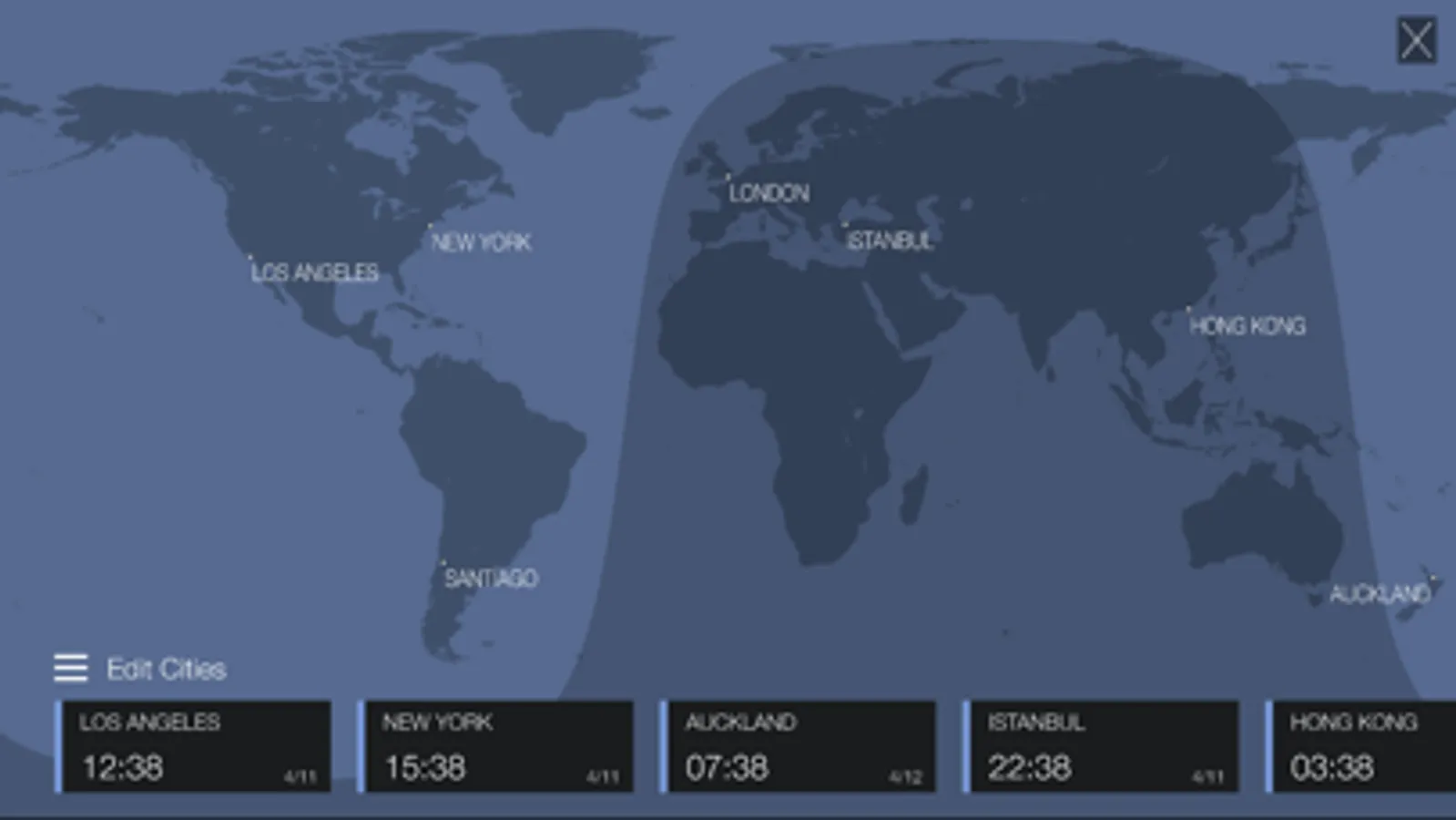 • Selectable map views such as Flight Preview, Total Route, Mid Flight, Time Zone Globe and World Clocks