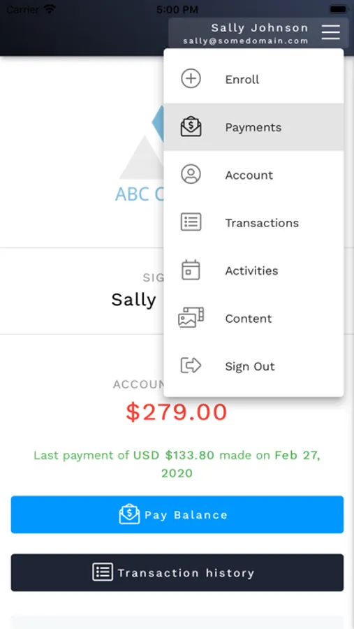 Enrollsy's app makes it easy to manage your account, change your payment information, view activities and online content. You can view all of your past payment transactions and remotely check in and check out. A full list of the features is below: