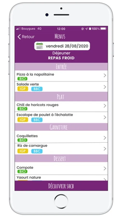 Avec WeLunch, consultez chaque jour les menus de votre restaurant scolaire, leur composition, les allergènes, le pourcentage de produits BIO, de produits locaux, de produits labellisés !