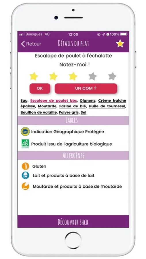 Vous pouvez noter vos plats, laisser un commentaire et les mettre en favoris pour recevoir une alerte la prochaine fois qu’ils seront au menu du jour !