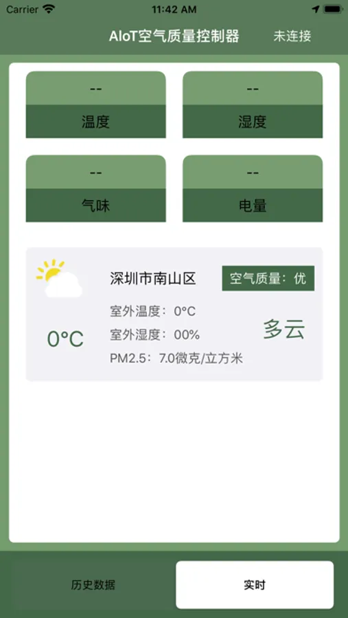 空气质量监测器是一款监测环境状态的仪器。有当前环境的温度、湿度、气味和仪器电量信息。