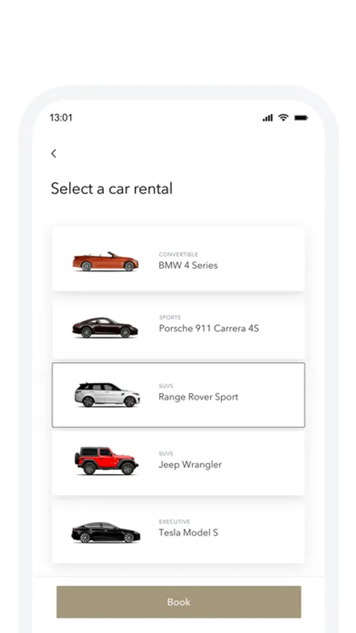 Book exquisite models from sports cars and convertibles to executives and SUVs.