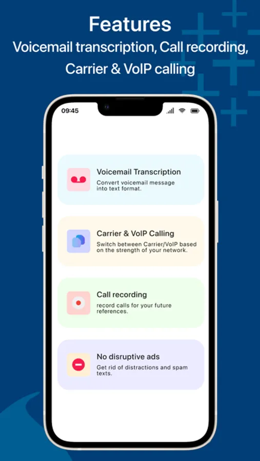 * Get a voice mail audio and transcription when you're unable to answer.