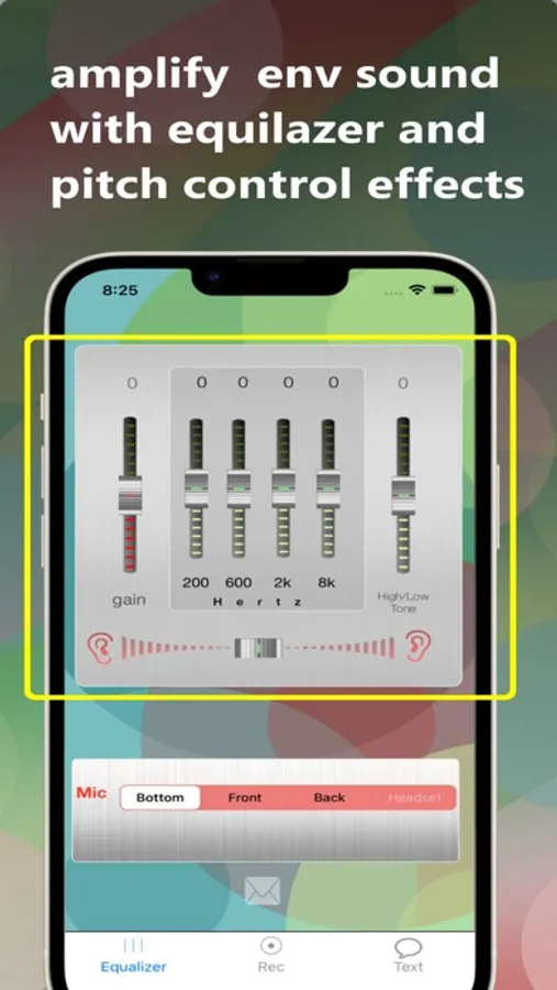 Giant Ear amplifies your hearing by increasing the volume of any sound heard by your iPhone.