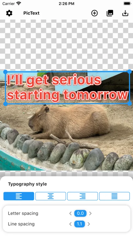 Just swipe to place a text or an image anywhere on the image.