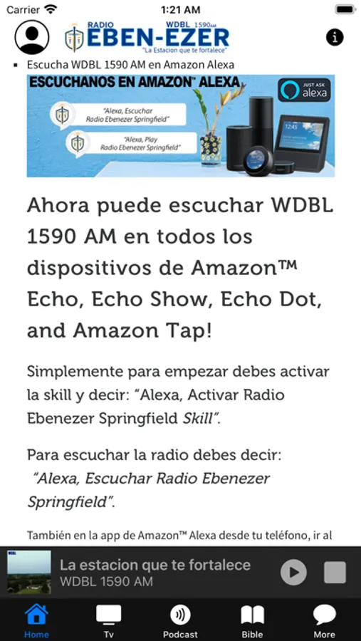 Radio Eben-ezer is a ministry of Iglesia Cristiana Ebenezer, in this app you can listen WDBL 1590 AM online radio with family programs, podcasts, music, and the word of God. The Audio and written content of this app is on Spanish.