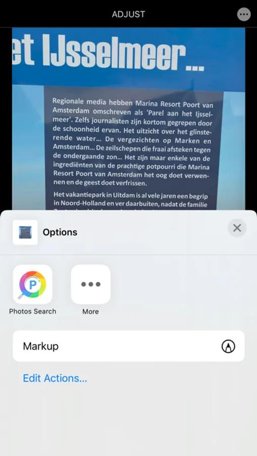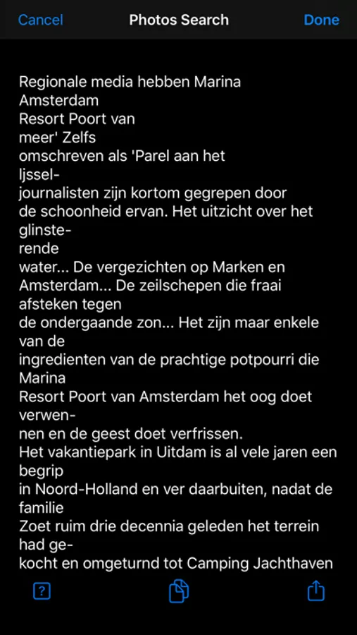 Photos Search also includes a Photos Editing Extension. With this extension you can extract text from any photo in Photos through the extension feature of Photos. Just Edit a photo in Photos and call on the Photos Search extension to extract all the text from the photo.