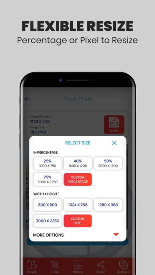 This app offers super easy way to reduce photo and video size by just one click. You can share these photos and videos on emails, social media and many more. It also saves more than 90% storage on your phone when you do resize and replace.