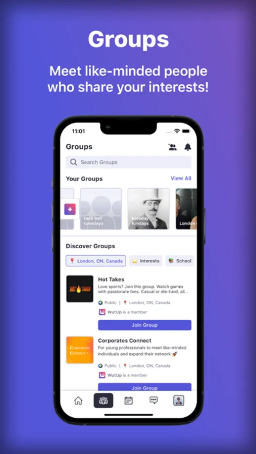 COMMUNITIES: A space to find and join communities of like-minded individuals. Whether you're into hiking, partying, gaming, or cooking, you can find a group that shares your passion. You can also create your own group, inviting others to join and share in your interests. It's all about bringing people together and fostering a sense of community.