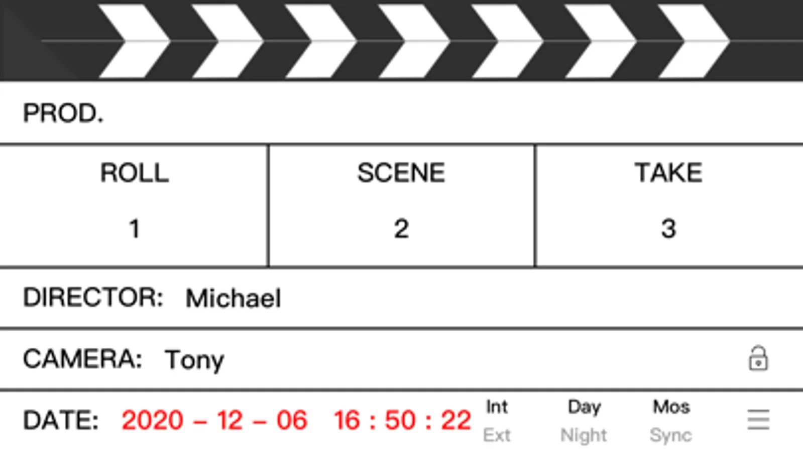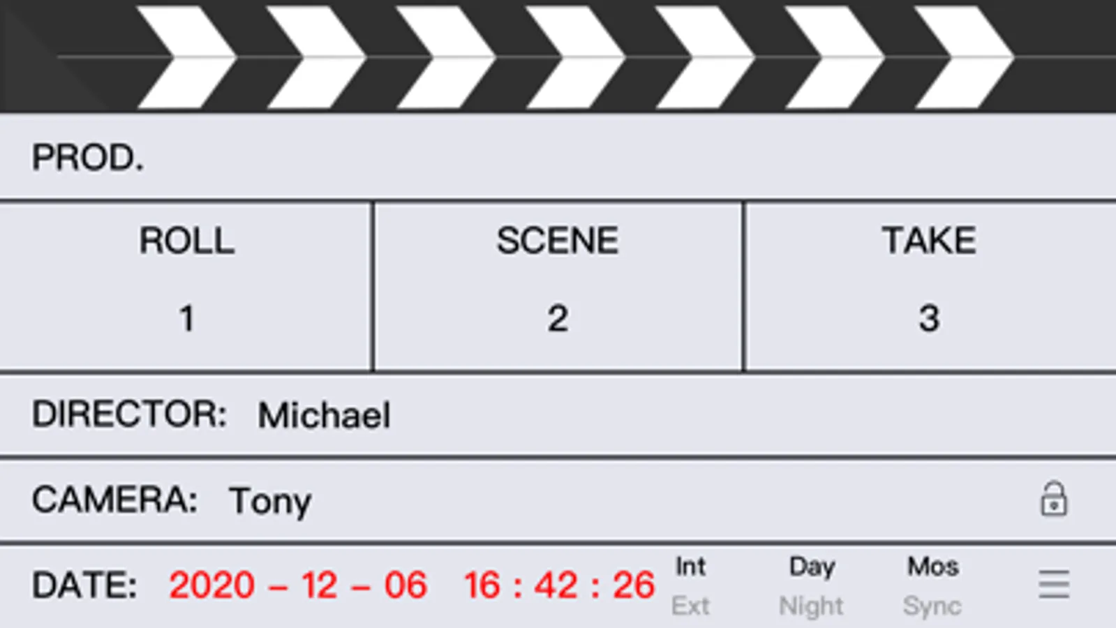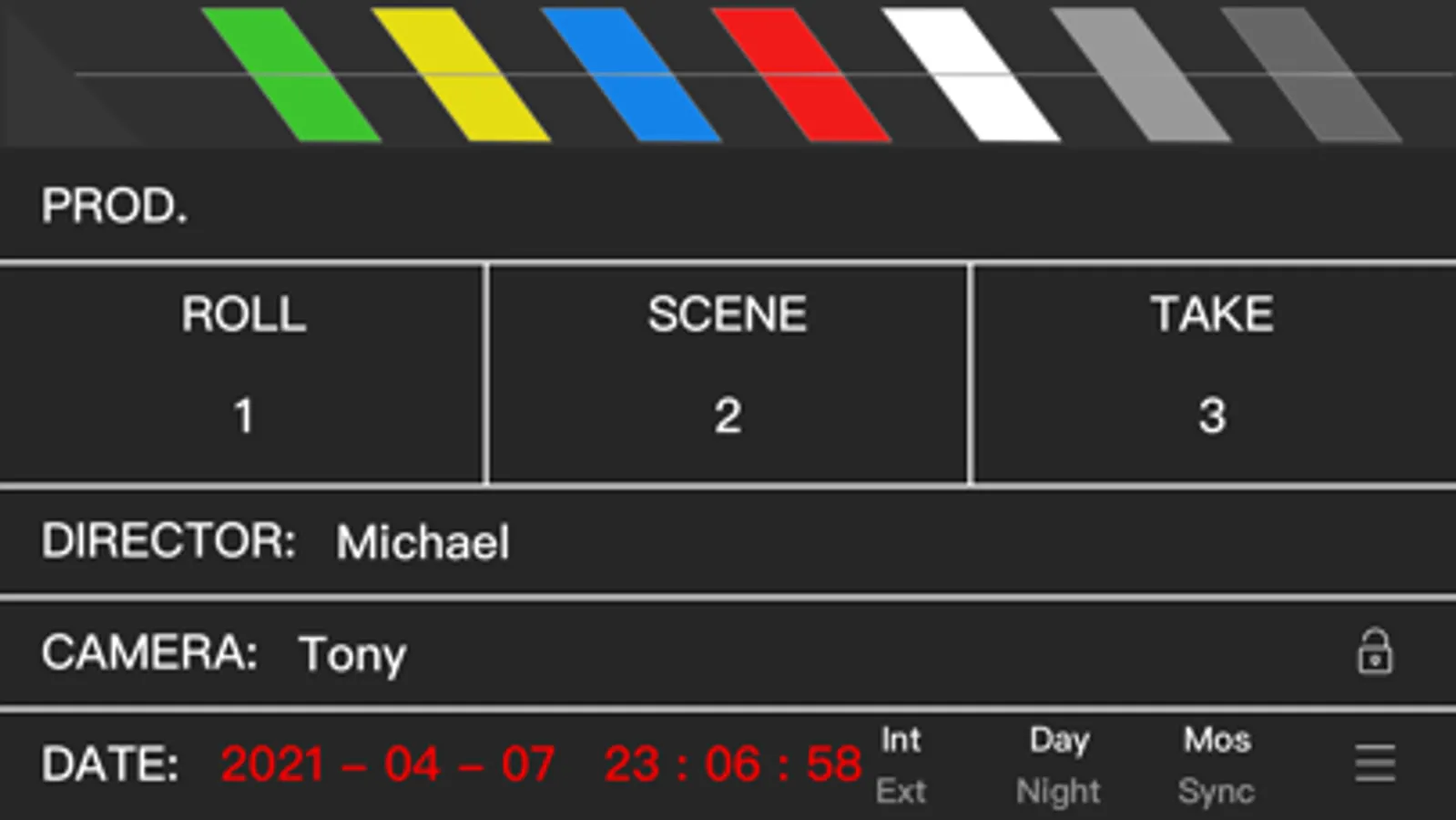 eSlate is a beautiful, useful, advanced digital slate for iPad, iPhone and iPod Touch.Tap the striped area on the head to clap the board, Tap the text on the board to edit the slate. If you don’t need to edit it temporarily, you can click the lock button, and it will not be editable. When the lock is opened, you can edit it again. You have nine different styles of modes to choose from, and you can choose the one you like.
