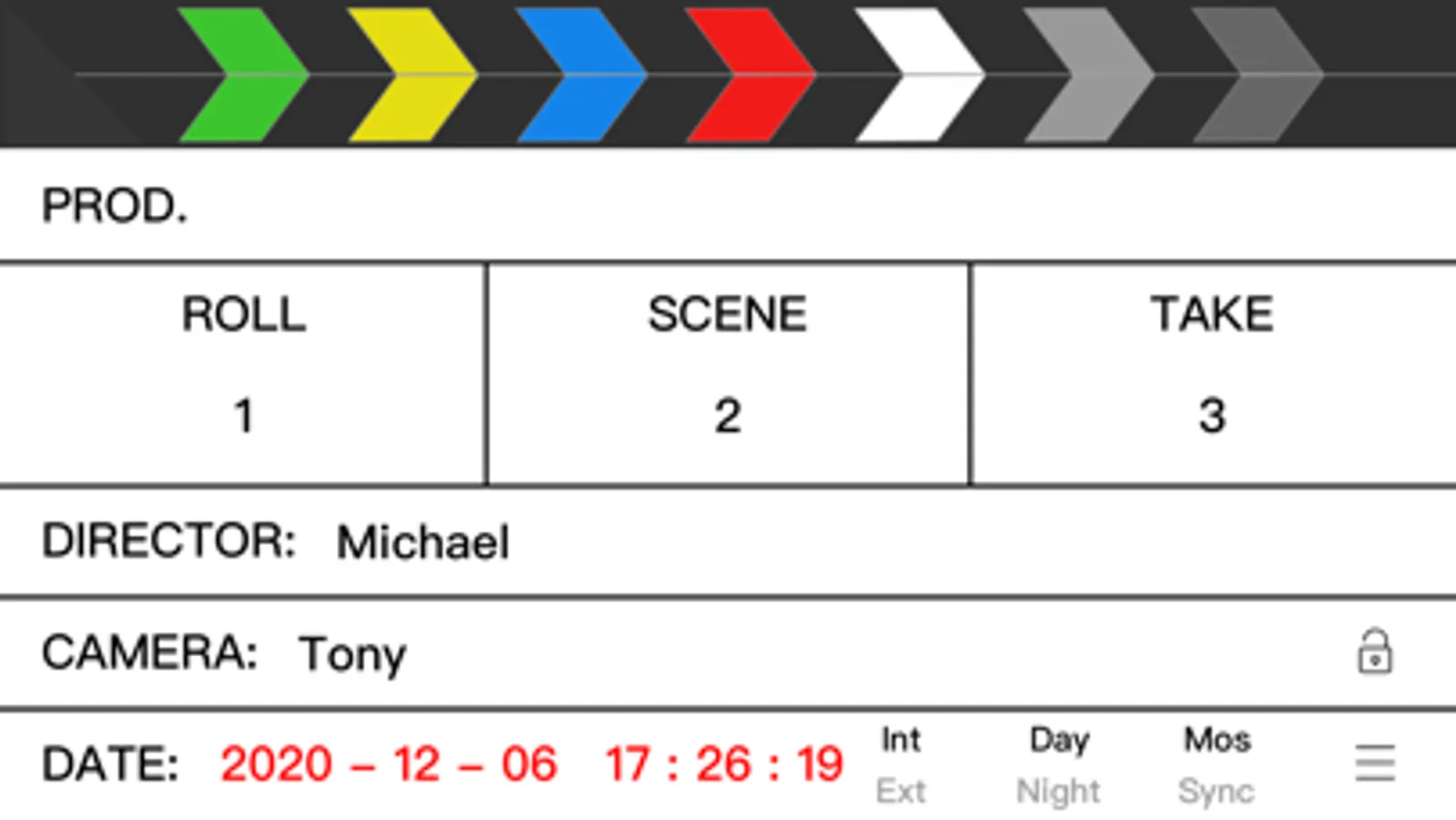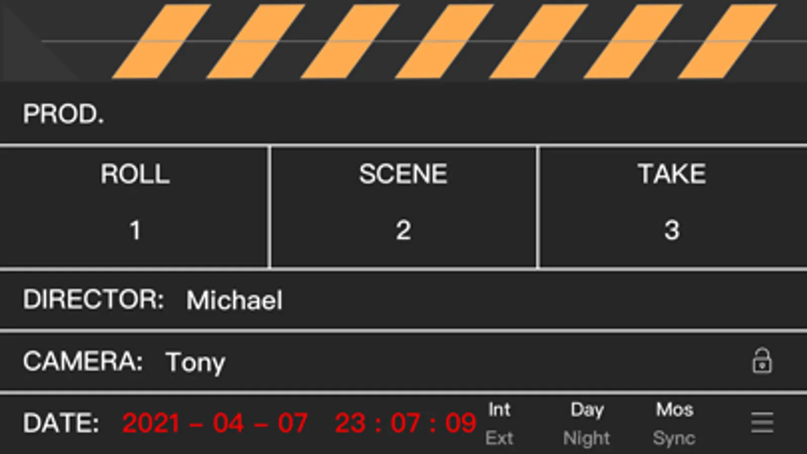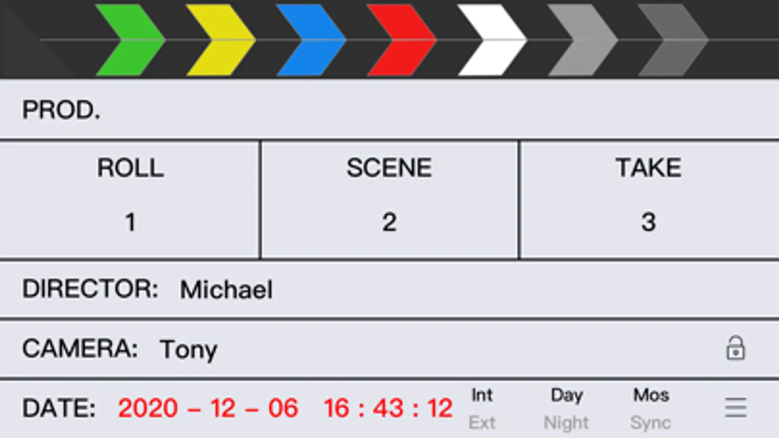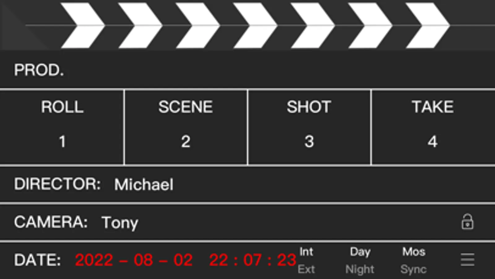 eSlate is a beautiful, useful, advanced digital slate for iPad, iPhone and iPod Touch.Tap the striped area on the head to clap the board, Tap the text on the board to edit the slate. If you don’t need to edit it temporarily, you can click the lock button, and it will not be editable. When the lock is opened, you can edit it again. You have nine different styles of modes to choose from, and you can choose the one you like.