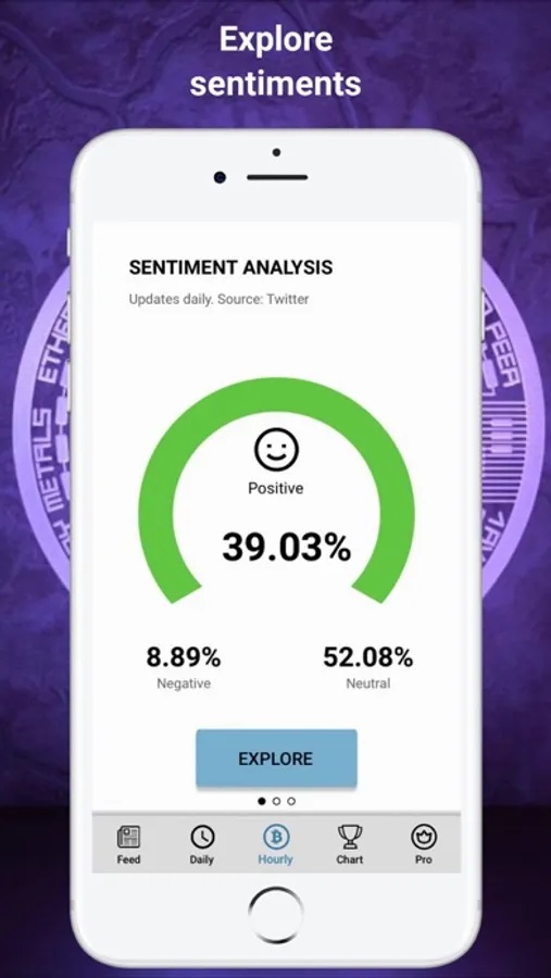Our app provides a wide variety of features: from hourly and daily price predictions of the most popular cryptocurrencies to the sentiment analysis, news and market stats. Supported coins include Bitcoin, Ethereum, Litecoin, Ripple, Bitcoin Cash and EOS.