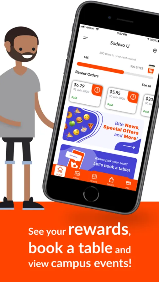 Bite for Universities is your mealtime companion. Our all-new app features contactless pickup options on your campus. Browse dining options, order and pay with your campus card and earn rewards when you use our new Bite Pay card.