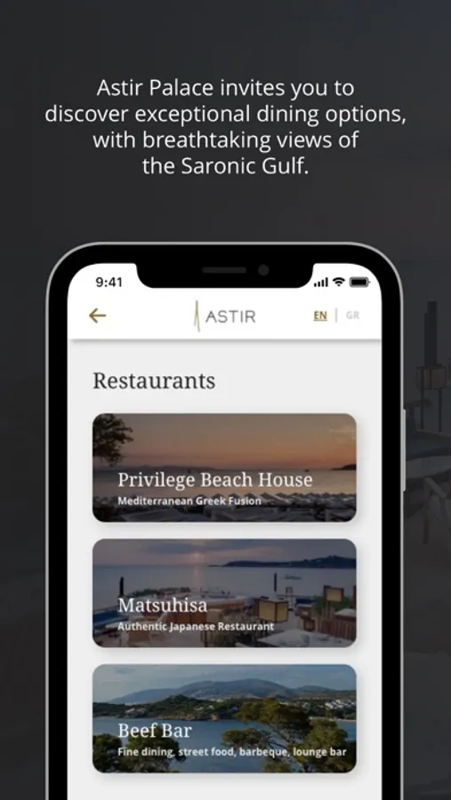 This application offers a touchless menu experience for the three restaurants located within the ASTIR Palace Vouliagmenis resort.
