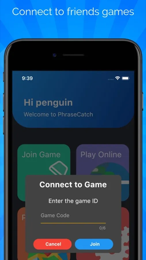 To create an online game, choose, ‘play online’. Now change the game settings to your liking. You can set options like points to win and the countdown timer just to name a few. One important option is the ability to use an online call service. If you and your group are all physically in the same room together we recommend keeping this value set to off. If you’re in different locations, turn this setting on. When you’re ready to move on, tap next.