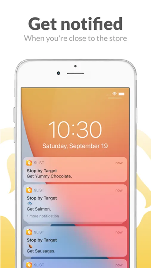 The 9List notification system allows you to see all the items on your shopping list and even mark them as completed right from the lock screen, no need to authenticate.