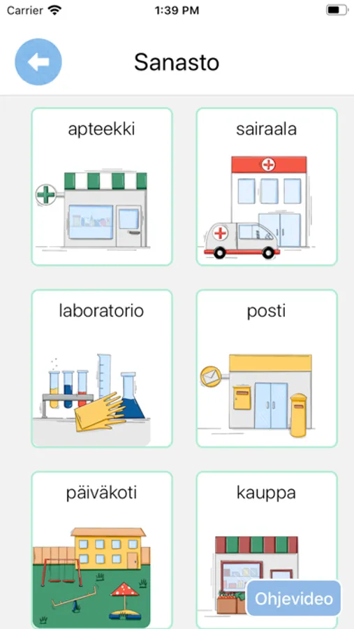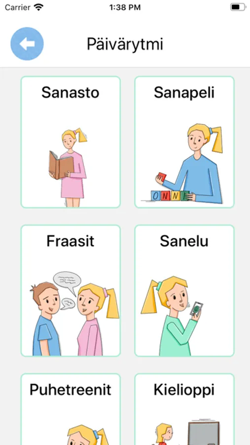 Sovellus tarjoaa 11 arkielämän aihetta ja laajan kuvasanaston: