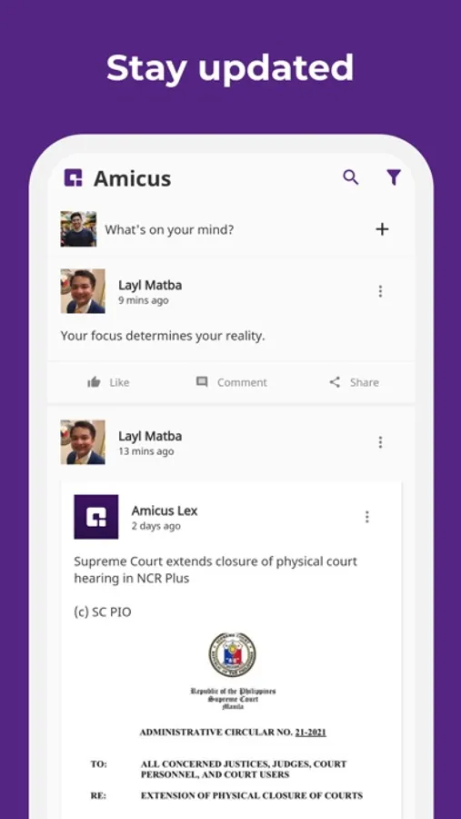 Amicus is social media platform for legal industry. We aim to connect lawyers, law professors and students, and other people whose work relates to the practice of law, with each other. Download and sign-up now!