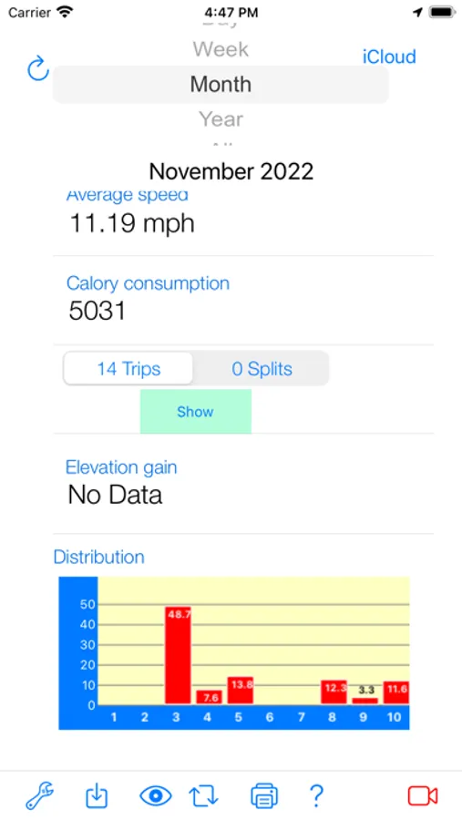 You have a survey of previous bike trips (week, month, year, all).