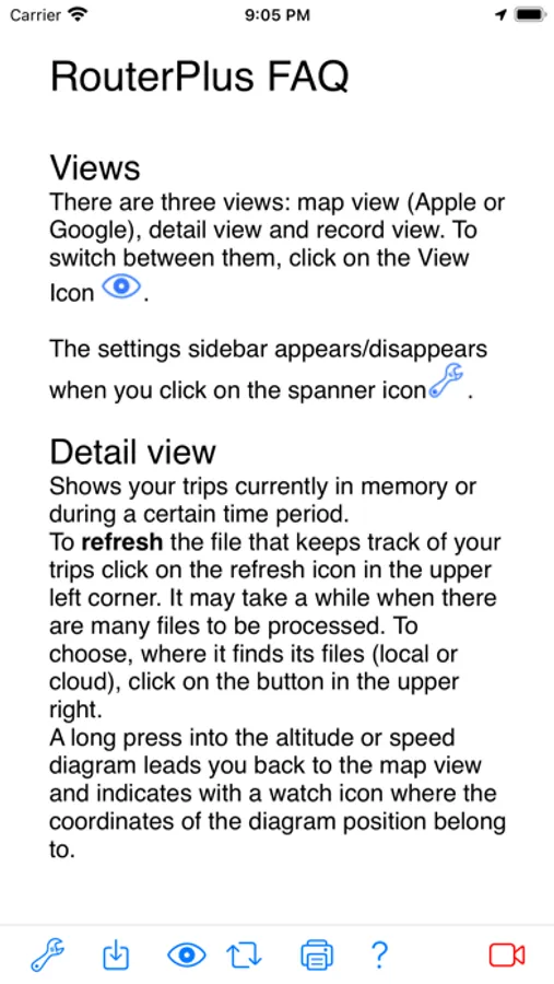 You can record your bike trips and show them on Apple - Maps AND Google Maps. Save them on your iPhone/iPad or in the cloud and share your trips with friends. Import and export GPX-files and KML-files from the internet or via email. iPads without GPS-Module (cellular) show all features, but can not record.