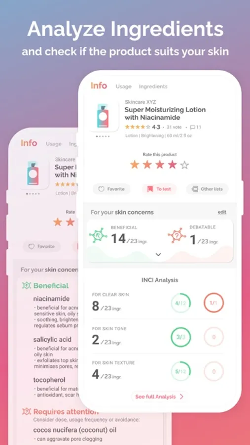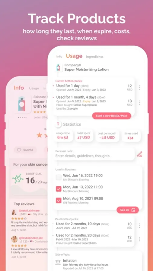 - Organise products in lists like “Best cleansers”, “All my moisturizers”, etc.