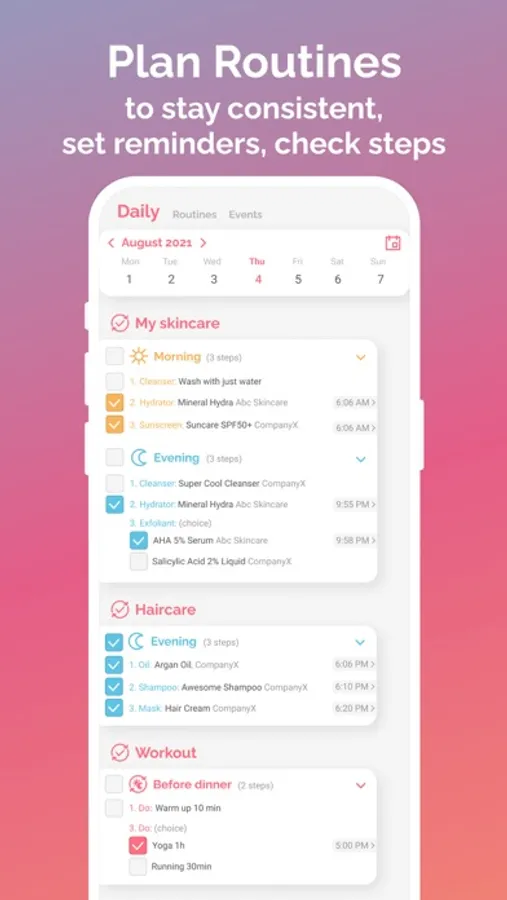 - Set up different product repetitions and get calculated routines for each day.