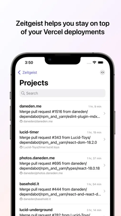 Zeitgeist helps you stay on top of your Vercel deployments.