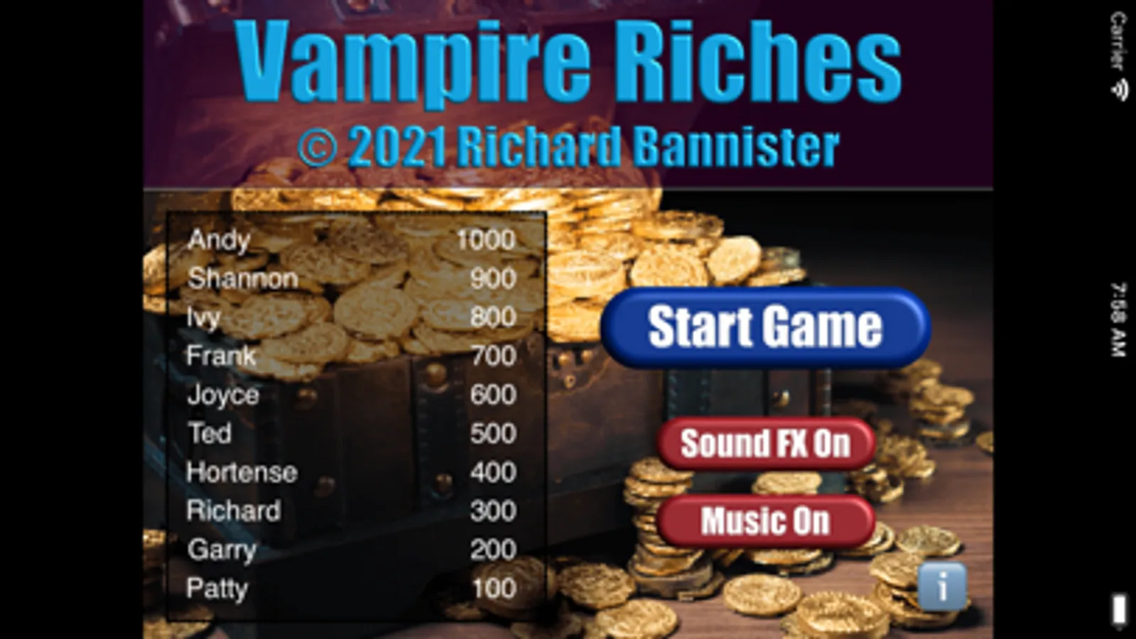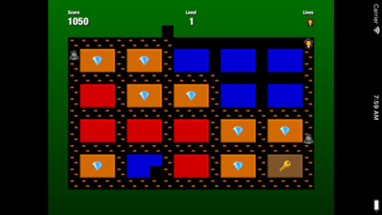 Uh oh, More zombies! Explore the ghastly mausoleum and collect treasure while avoiding the creeping ghouls that stalk your every turn. There are twenty boxes to examine on each level; once you find the key, you can escape to the next one by moving into the space at the top of the playing field. Keep your bloodsucking pal moving as he expands his vampire coffers in this gem looting classic!