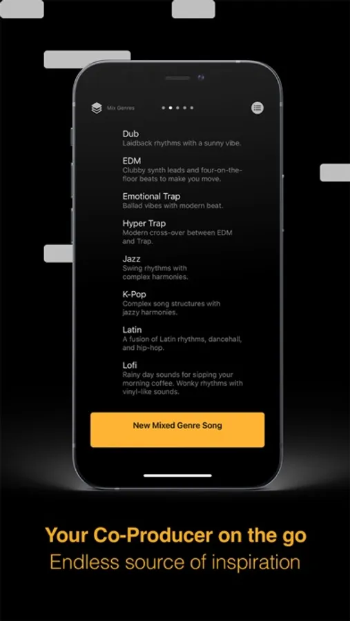 Songen has multiple up-to-date music genres that you can you use. Songen's algorithms know the characteristics of many of today's most popular music styles. Choose your favourite genre or mix multiple genres.