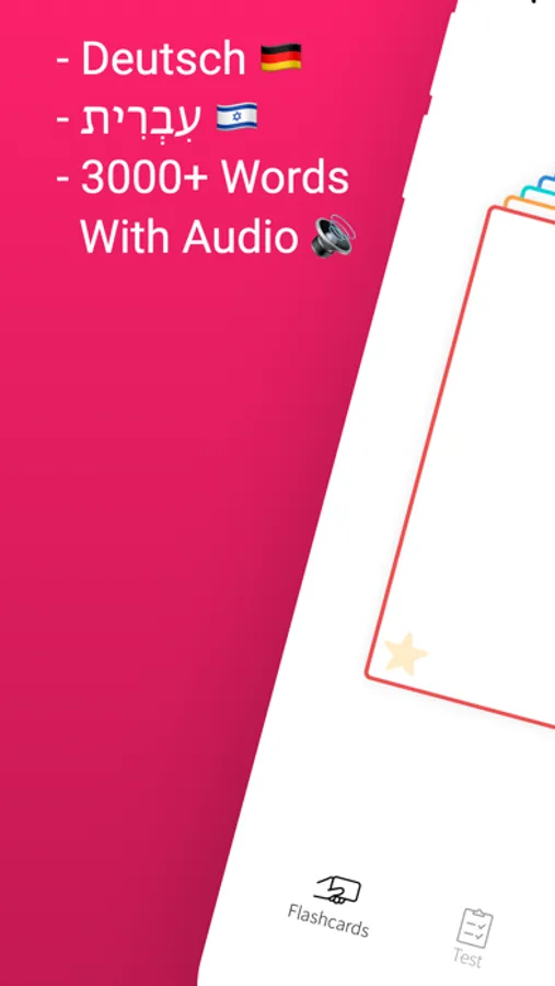 Download our app now and embark on a language learning adventure like no other. Open doors to new opportunities, connect with people from different cultures, and broaden your horizons. Start mastering German and Hebrew vocabulary today!"