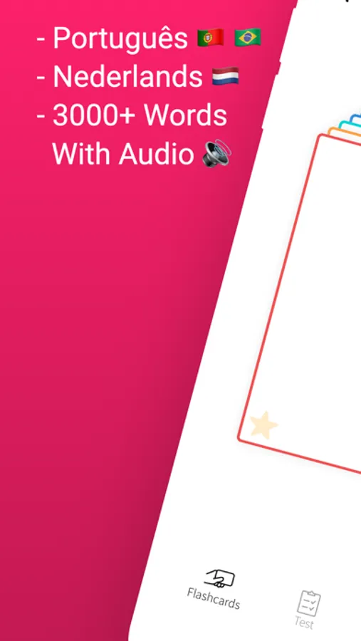 Whether you're a beginner or an advanced learner, our app offers three dynamic features to accelerate your progress: Flashcards, Word Tests, and the exciting Match Game. Start your language journey today and become a fluent communicator in both Dutch and Portuguese!"