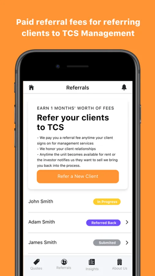 Agents- Grow your business and become a one stop shop for your real estate investors! Get the information you need for your investors when you need it, anytime for any investment property. TCS Management is a full service property management company servicing the Tri-State area. Get paid for your investors working with us. This app allows you to track all your PM referrals in one spot along with obtaining any needed information you may be seeking in regards to property management. Let TCS Management be your go to PM referral partner.