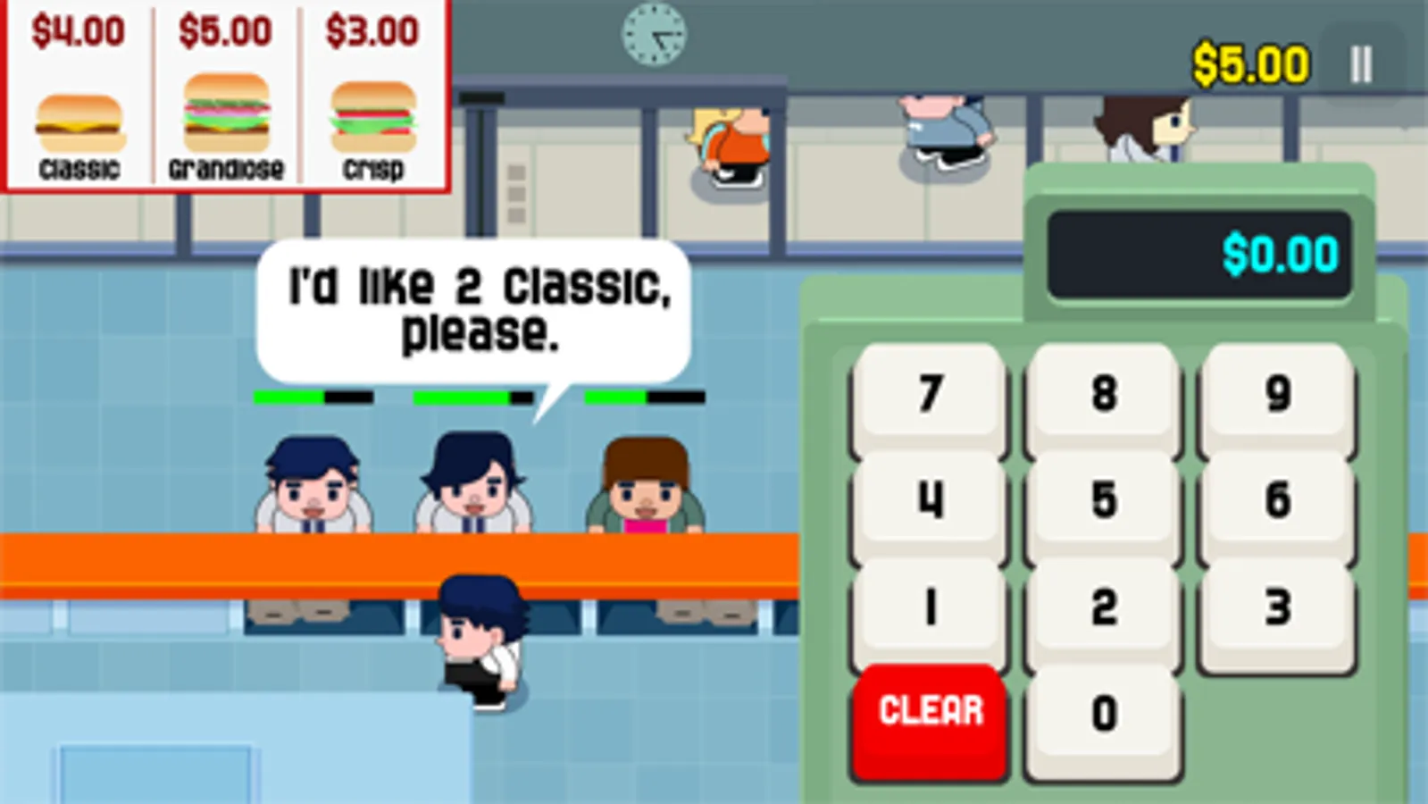 Number Diner is a math learning situated in a diner simulation environment. It provides the specific context of a burger diner in a 2D game environment where the math problems are derived from the game’s scenario.