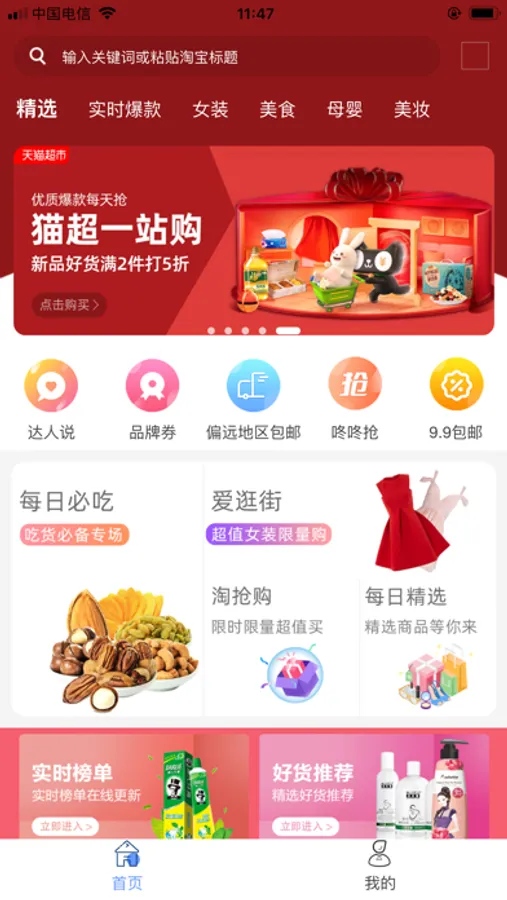 【全品类商品一站购物】覆盖时尚服饰女鞋男鞋、童装童鞋、居家日用、运动户外、百货家纺、3C数码、家用电器、文具图书汽车用品、海淘商品、美妆个护、美食、母婴各种大类目。