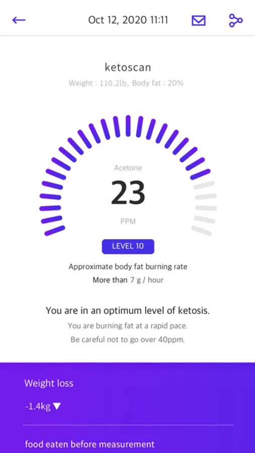 Step 2. Input Your result : Measurement Result ( ppm ), Weigth, Bodyfat