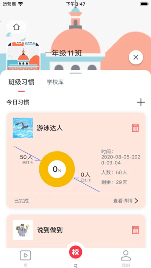 每一个好习惯的训练,从开始的刻意、不自然到不经意、自然,需有意识地自我训练21次以上。习惯公社是一款习惯训练以及管理养成平台,通过严格有效的督导机制,让学生提升认知和坚持行动,轻松养成好习惯。