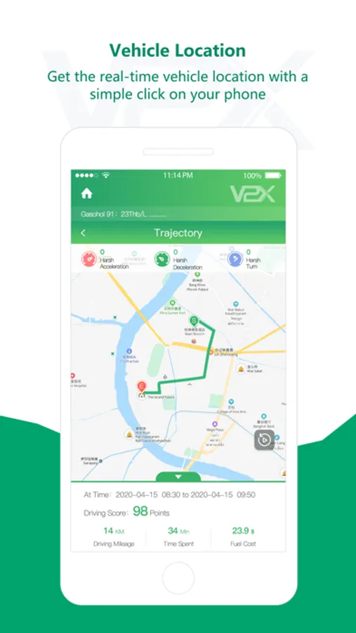 Every journey of your vehicle, including the travel time, mileage, fuel cost, and trajectory will be recorded and send to your mobile.
