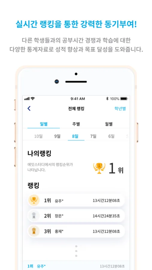 - 습관형성에 가장 중요한 부분은 흥미와 꾸준함입니다. 에잇스터디는 아직 공부하는 습관이 형성되지 않은 학생이 빠르고 올바른 공부 습관을 형성할 수 있도록 다양한 동기부여 요인을 고려해 만들어졌습니다.