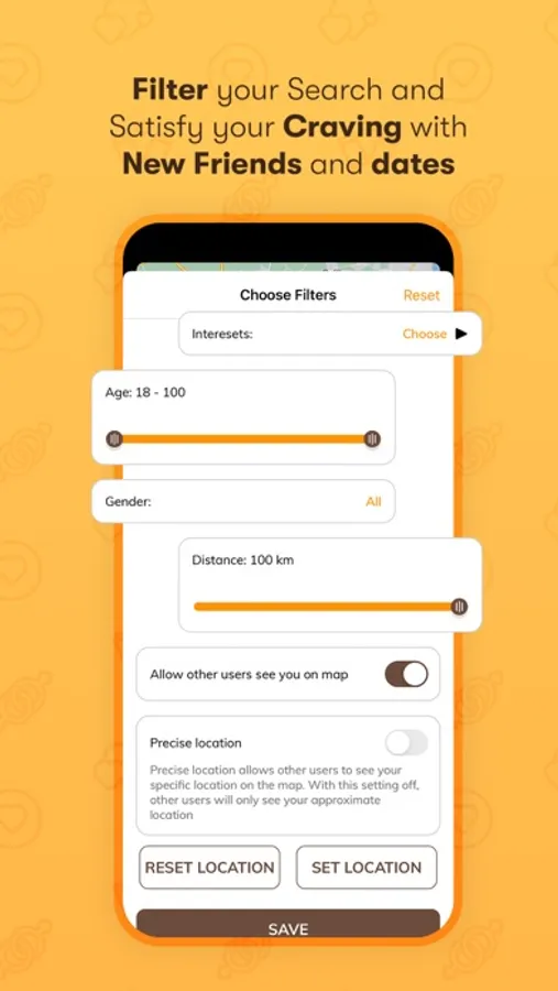 - Filter people by age, interest, and gender