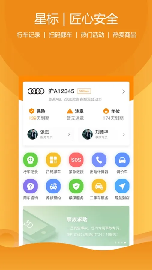 星标是一款通过WiFi操纵旅橙行车记录设备(包括单目、双目、四目、流媒体后视镜、原车360升级行车记录等多种产品形态)并能及时处理交通事故的App应用。