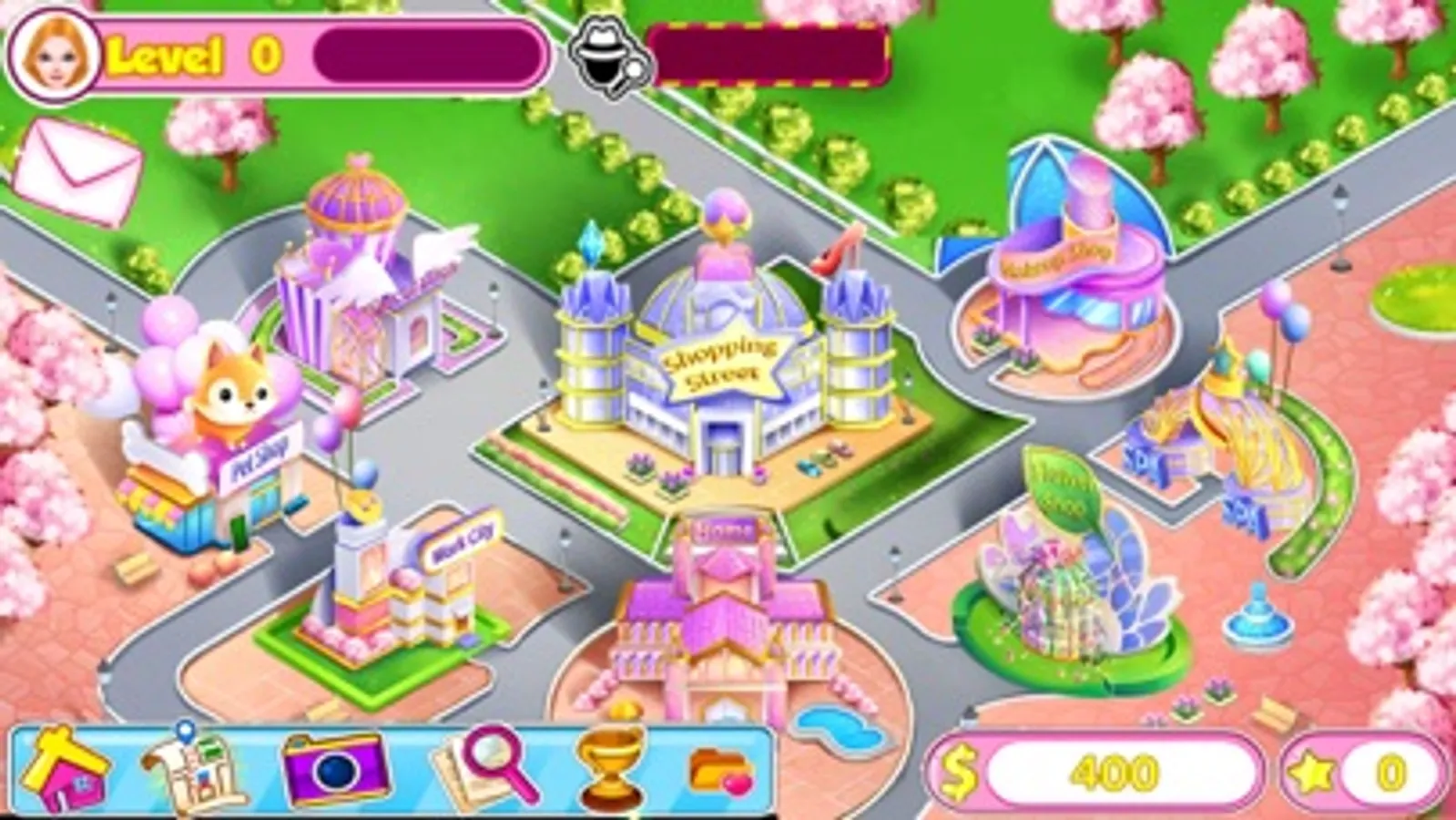 Welcome to the shopping street, we have prepared lots of interesting parties. Come to choose suitable outfits to attend the party. Follow our steps. There are three girl characters that you can choose. Create the character’s name, age, constellation and so on. You also need to choose one pet that you like. Go to different shops to buy different styles of outfits according to the party’s requirements. The outfits have their own properties. You need to match the correct properties. Moreover, you will also have detective tasks to find the required things. The character has different levels. You can update levels through finish different tasks. Shopping need to use coins and you can earn coins by tasks and do work for others. There will be discount and new activities. You can buy props to decorate your house and plant flowers. When the flower is mature, you can sell it to earn coins.