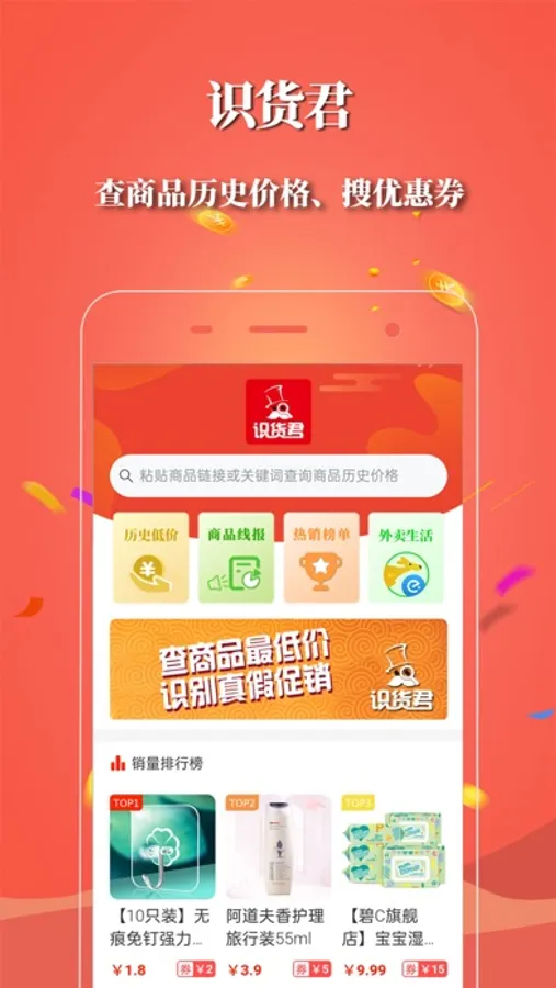 识货君是主要进行商品历史价格查询、历史低价商品集合、羊毛线报信息、外卖天天神券优惠券的购物省钱工具!