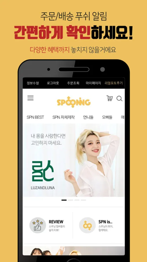 구매했던 상품을 일일이 찾을 필요 없이 앱에 접속하면 자동으로 뜨는 간편리뷰 기능으로 편리함을 더했습니다.